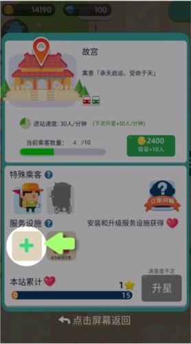 2、除了满足特殊乘客的需要,你还需要满足其他乘客的需求,在地图站点添加设施设备,例如制作卫生间、放置售卖饮料矿泉水、雨伞、电梯、广告牌、监控等系列设备,这些设备不仅可以添加满足广大乘客的需求,还可以为你带来利润同时带来安全问题,并且这些设施可以进行升级,升级可以为乘客带来更多的满意度。