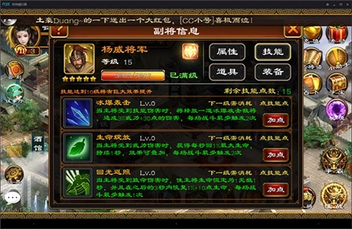 加点建议:强烈建议将点数全部加满!作为橙将,杨威将军的强度确实达到了足够高的水准,考虑到春哥技能的特性,我建议把杨威将军列为所有副将的优先培养目标。