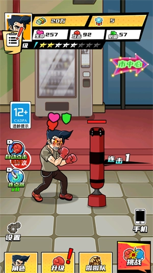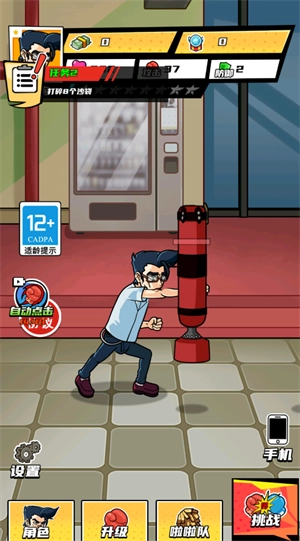 1、玩家需要持续点击屏幕,通过打破沙袋来增强自身实力