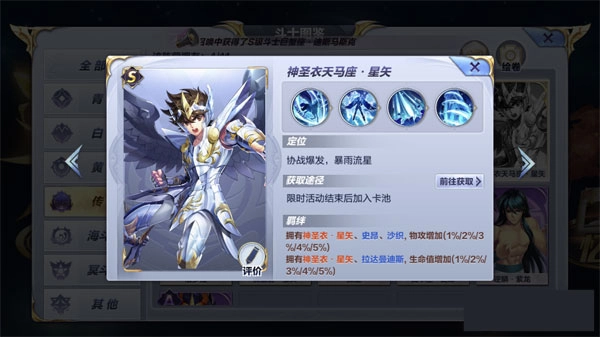 射手座是普通玩家群体里最容易获得的斗士之一,很多玩家在副本卡关时,常会想到把射手座纳入阵容——这恰恰说明射手座的输出能力相当出色。而且射手座的攻击向来具备秒杀效果,它依靠“黄金利箭”技能,攻击时会吸收三名友方斗士的攻击力,以此实现对敌人的秒杀。因此使用射手座时务必抢占先机,尽早秒杀敌方的主力斗士,这样就能大幅减轻己方阵容的压力。