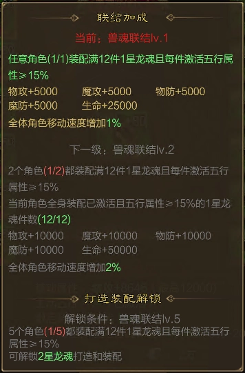 装配任意龙魂后,移除所有角色的<兽魂套装加成>,改成更为强力的<兽魂联结加成>!
