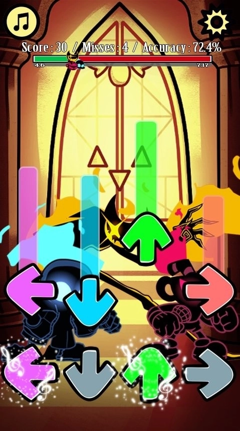 3.玩家需依照屏幕上出现的箭头、标记等提示,进行击打键盘或触摸屏幕的操作。
