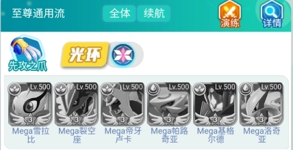 裂空座与洛奇亚具备全体范围攻击及强悍的吸血能力,而且它们自身会持续成长叠加伤害,在游戏前期即可获取,堪称新手的得力神宠。Z神能提供护盾并补充伤害,雪拉比负责续航支持,帕路奇亚则承担嘲讽吸引仇恨的职责,为核心宠物创造良好的输出环境。