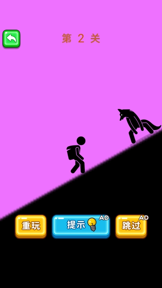 4.你得认真观察图片,用画线的办法保护火柴人免受伤害,遇到关卡卡住时能点击下方的提示,要是不想玩了可以直接跳过。