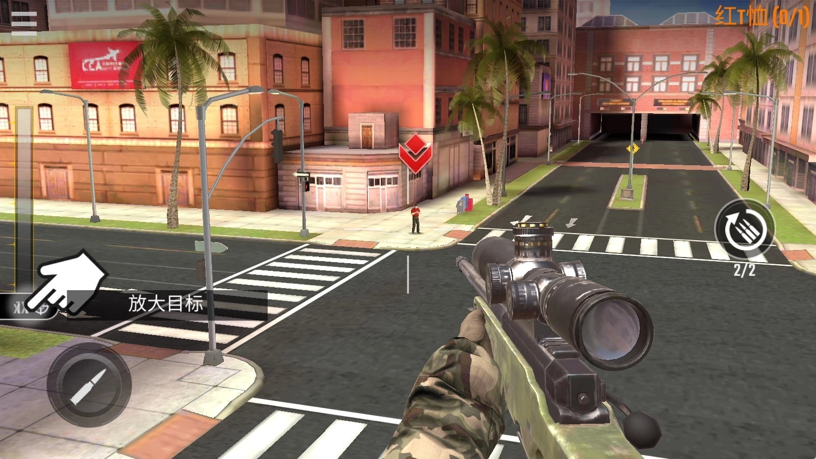 2、滑动左侧倍镜放大,然后瞄准人物头部。