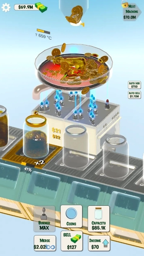 熔化塑料球、金属硬币和其他各类物品!把瓶子装得越满越好,这样就能获取更高的游戏内收益!