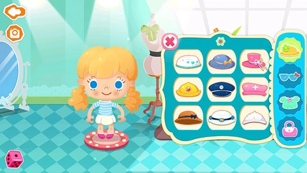 1、玩家能够点击左侧的“衣服”气泡,给角色糖糖更换精致的套装,塑造多样造型。