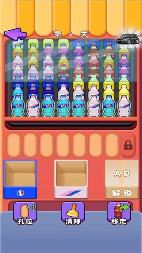 货柜上的瓶子会持续增加,玩家需要在瓶子填满货柜前,通过消除瓶子来维持空间,不断刷新自己的记录。