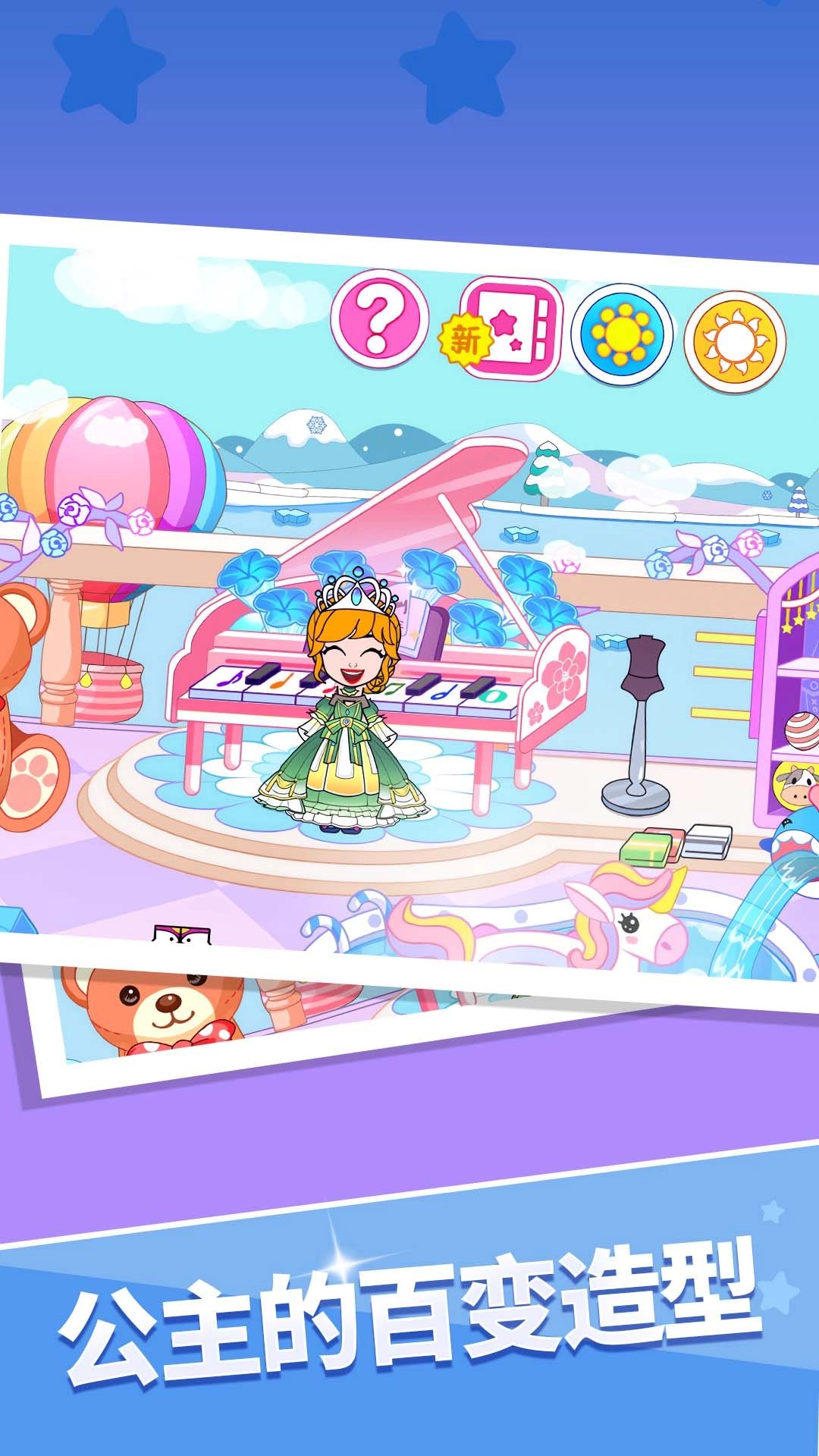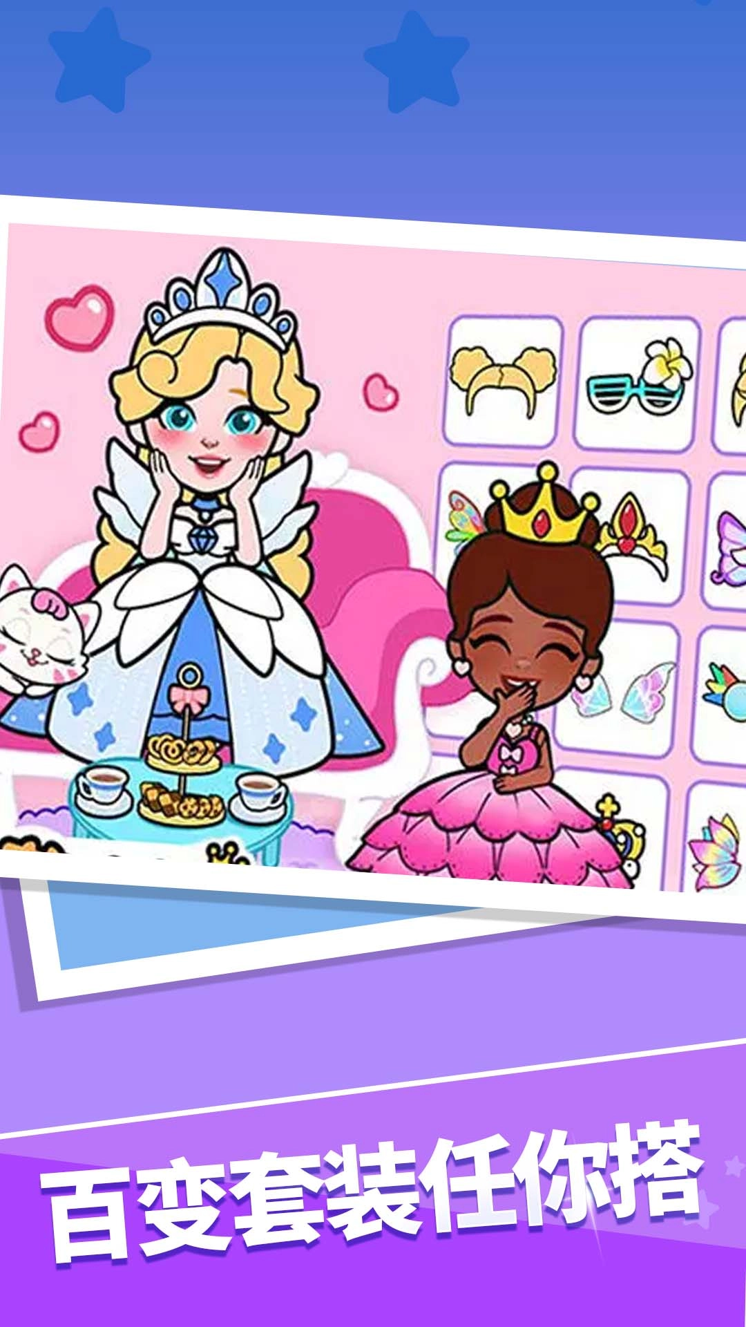 拥有海量精美服饰、妆容、配饰,风格多样,搭配自由,能满足玩家对不同公主形象的想象。