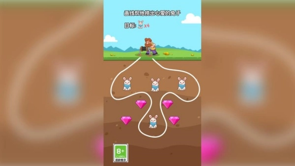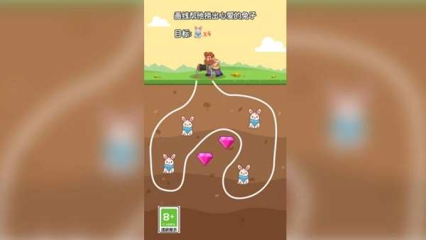 《画线闯关大挑战》安卓版是一款以划线挖掘为核心玩法的休闲益智游戏,玩家只需在屏幕上划线,就能帮助主角突破重重障碍,完成闯关任务。游戏凭借轻松幽默的风格、创意十足的关卡设计以及简单易懂的操作方式,为玩家打造了一个充满挑战与乐趣的冒险世界。