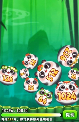 没错,这款游戏沿用了经典的2048合成机制,只要逐步合成指定目标就能获取相应的红包奖励。攒下的红包会按比例兑换提现,最低提现额度仅需0.3元,而且提现是秒到账的!另外,要是成功合成出最终的大熊猫形象,还能拿到额外的提现奖励呢!