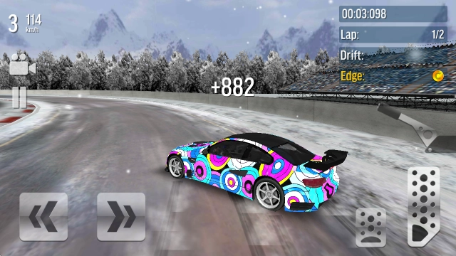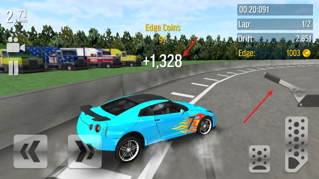 在车辆转向时,按下右侧的手刹键就能触发漂移动作,系统会依据漂移完成的质量评定出不同等级的分数。