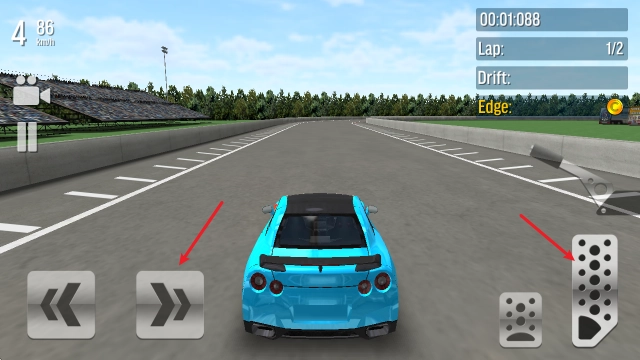 进入游戏后,点击右侧的长踏板来启动汽车,通过左侧的方向键操控转向。