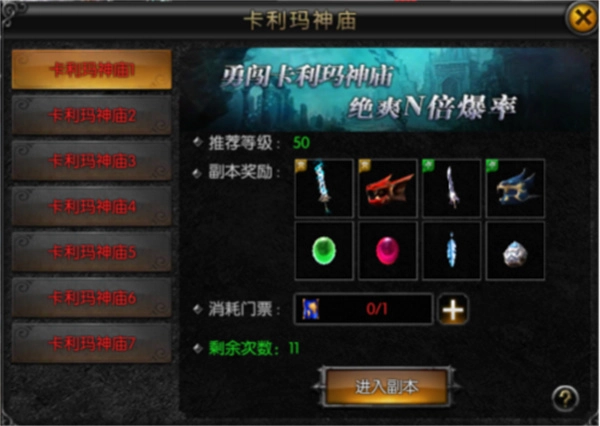 3、然后通过挑战卡利玛神庙来获得丰厚副本奖励;