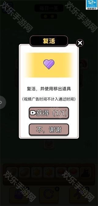 5、当下方卡槽放满了,游戏还有一次复活的机会。