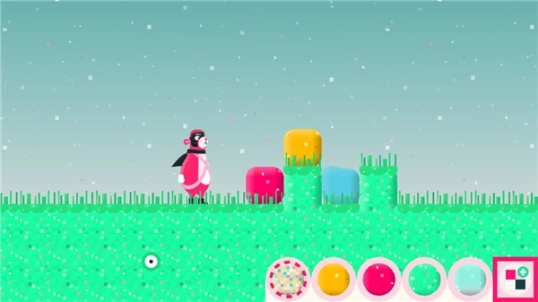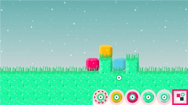 2、进入游戏界面后,能看到右下角排列着一排不同颜色的方块。