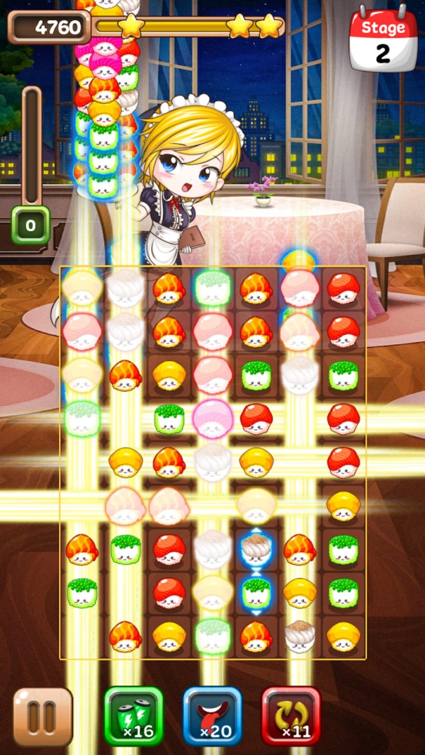 创新设计的寿司主题消除玩法,把美食元素和经典三消巧妙地结合在了一起。