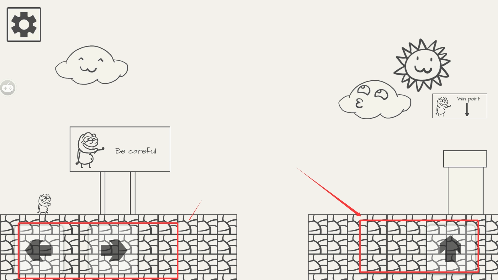 2,按照画面里的提示,左边是前进和后退的操作,右边则对应起跳动作。