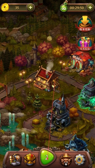 打开游戏蒸汽谜阵,点击底部标有【2】的绿色按钮,即可进入宝石消除关卡。