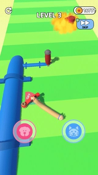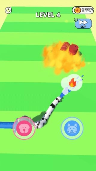 2、游戏需要控制连接在一起的猫头和狗头,完成每一个奇特的关卡。