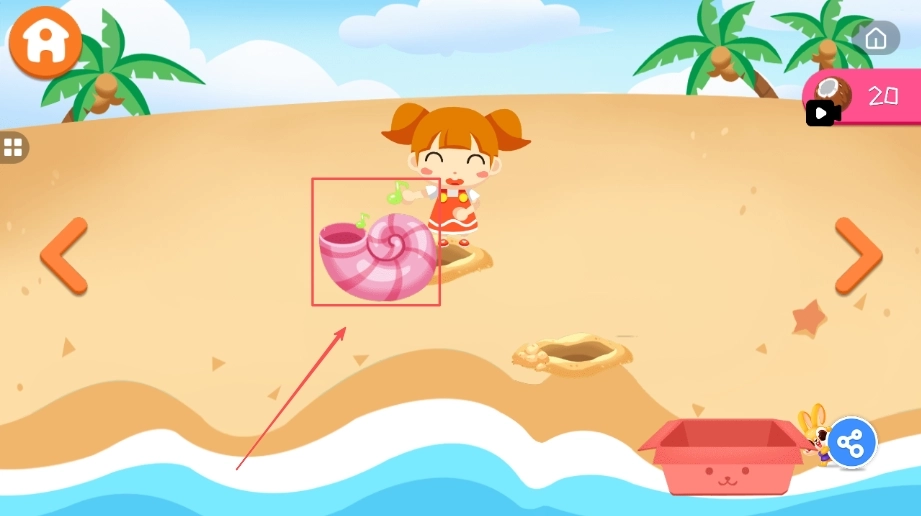 1、在沙滩别墅的环境里自由探索,和各个场景中的元素互动来发现乐趣,以此培养主动探索的精神,提升观察力。