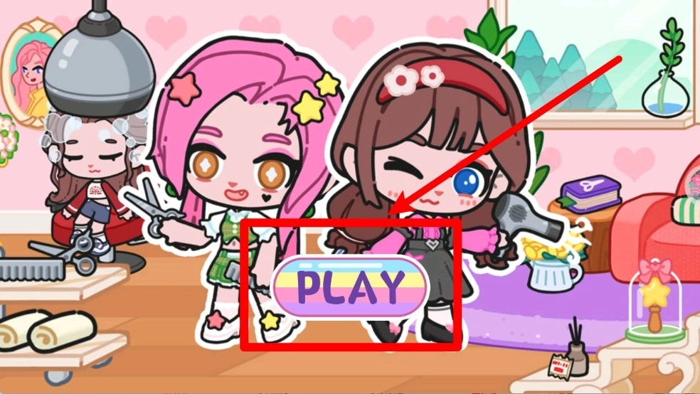 1.点击主界面中间位置的PLAY按钮就能开启游戏,进入到满是可爱风格的换装与美发冒险世界。