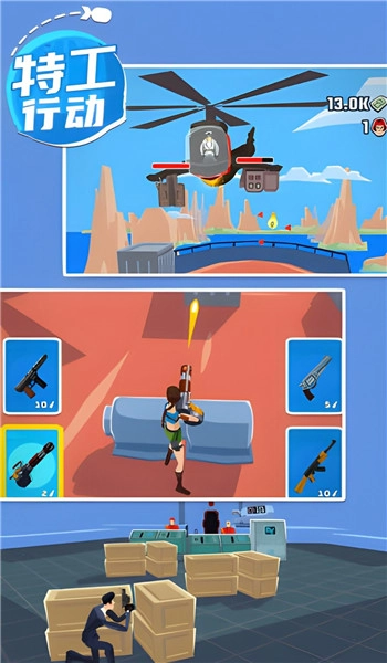 特工射击行动是一款充满趣味的卡通风格射击动作游戏,玩家能在此挑选适合自己的武器,投身紧张刺激的射击对战。游戏里敌人数量不少,玩家需专注于消灭敌人而非被敌人击败。其治愈且解压的画风十分吸引人,快来体验一番吧。