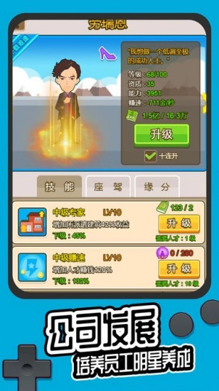 在游戏里挑战超精彩的草根逆袭任务,玩家可以挑选自己钟爱的创业项目,和其他小伙伴们互相扶持,一步步壮大自己的公司。游戏的自由度相当高,大家能在这里体验各式各样的市场竞争,还能选择不同的经营方向,设计独特的经营模式,找到自己感兴趣的创业任务。