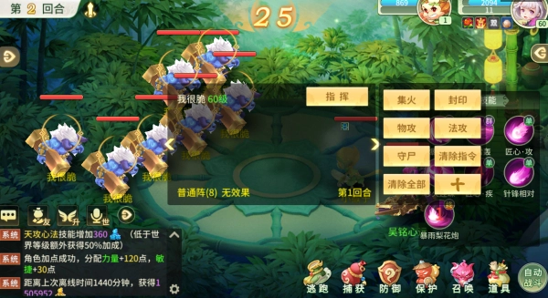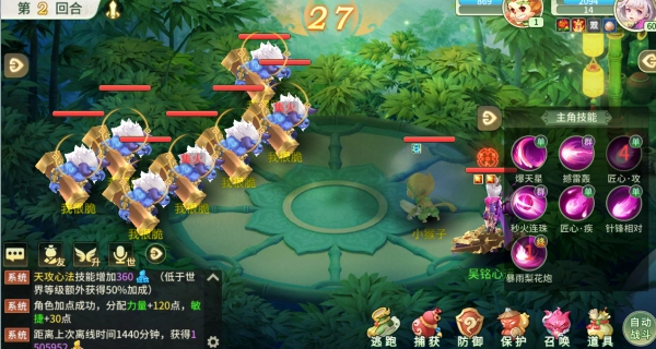 2、玩家可操控角色自身与宠物释放技能,在30秒倒计时的选招阶段,选定想要施展的技能并点击释放目标。部分技能设有冷却回合,需待冷却结束后方能再次使用。