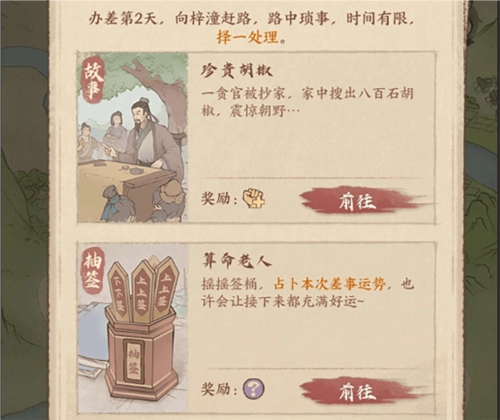除此之外,这座城里的良田区域内或许还会出现抉择事件、驿站事件等。在选择这些事件时,需要根据自身需求进行考量——比如是希望提升差事的成功率,还是一心想要获取更多奖赏。要知道,每一个选择都会对最终的差事评级产生影响!