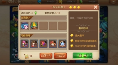 相信不少玩家在拿到三星评价后,会对反复刷副本升级的方式感到厌倦,这时用扫荡功能就能跳过战斗环节,直接消耗活力值获取副本奖励!