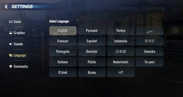 若玩家希望更改当前使用的语言,可点击SETTINGS选项进入设置界面。在设置页面中找到Language选择栏,点击选择想要使用的语言即可。需要说明的是,目前该功能暂不支持中文。