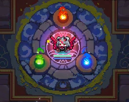在主城城镇的正中心,设有一座三色祭坛,其外观如图所示。当你站在祭坛的正中心位置时,按下普通攻击键,就能弹出进入界面。