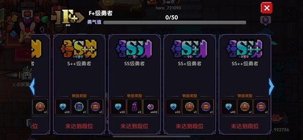 在《我的勇者》的世界里,段位体系共划分为八个大段,依次是F、E、D、C、B、A、S、SS。每个大段内部又细分为三个小段,比如B级段包含B级勇者、B+级勇者、B++级勇者三个层级;SS段也是如此,分为SS级勇者、SS+级勇者、SS++级勇者,其他大段的分段规则以此类推。