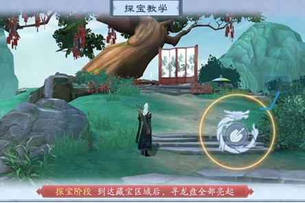 ①按照右侧寻龙盘的亮度提示移动,离宝物越近,寻龙盘亮起的部分就越多。