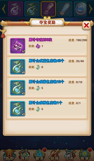 6、夺取宝物的次数越多,能领取的奖励也越丰厚,其中包含紫色宝物碎片和大量经验宝物,奖励十分可观。