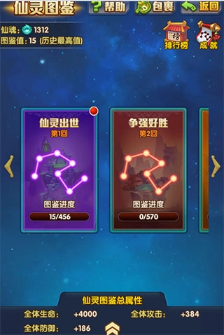 图鉴可不只是给大家看个新鲜的,那些多出来的仙灵该怎么处理呢?难道只能当升级用的“狗粮”?当然不是啦,把它们用来点亮升星,就能给少年增加更多属性加成呢。