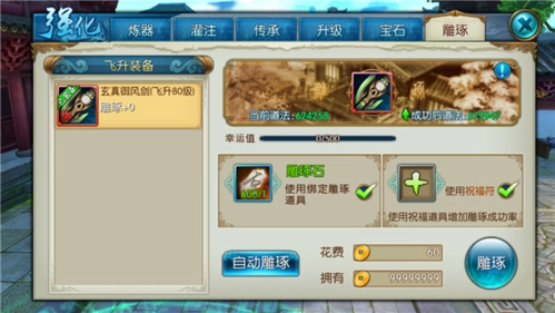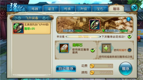 玩家能够借助雕琢来提升飞升后装备的雕琢等级,进而显著增强装备的属性。