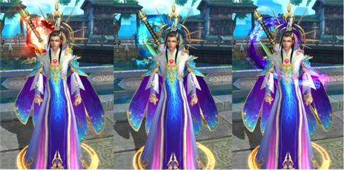 当武器类装备的雕琢等级达到38级、52级和60级时,装备外观将发生变化,具体效果如下图所示。