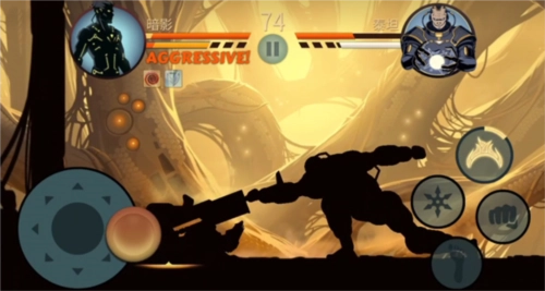 2、为触摸屏设备量身打造的操作杆与两个动作按钮,带来直观的格斗体验,让人瞬间便能沉浸其中。