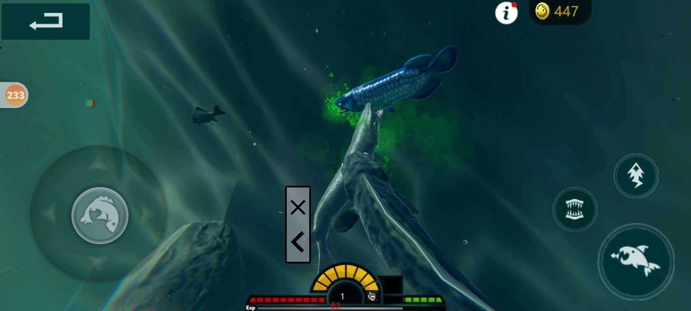 3、尽量去捕捉体型更大的鱼类,想尽一切办法让自己的体型变得更庞大,开启愉快的行动;