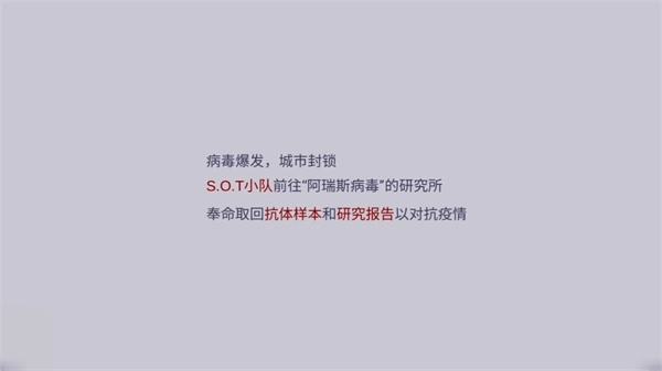 4、剧情背景方面,故事围绕病毒爆发的脉络展开。城市实施封锁后,S.O.T小队接到任务,前往研究所取回抗体样本以及相关的研究报告。
