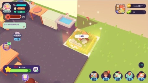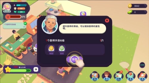 3、玩家还能借助招聘新员工与培训老员工的方式,增强餐厅的综合实力,助力餐厅在竞争白热化的市场里崭露头角。