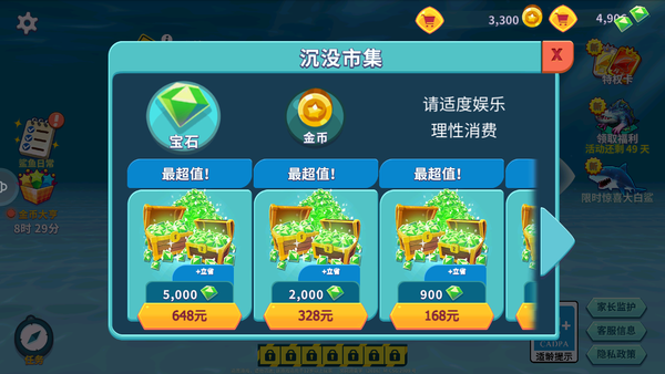 《饥饿鲨进化钻石版》游戏特色: 1. 有15种隐藏宝物等待玩家去发掘。