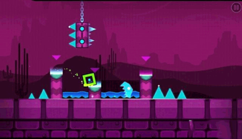 3、于关卡内,控制方块在各平台间进行跳跃,需快速做出反应,从而躲避障碍。