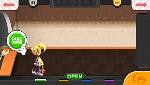 5、接待前来点餐的顾客,点击TAKE OROER (原句中TAKE OROER疑似有误,正常应为TAKE ORDER,不过按要求仅修改表述未修正此错误)