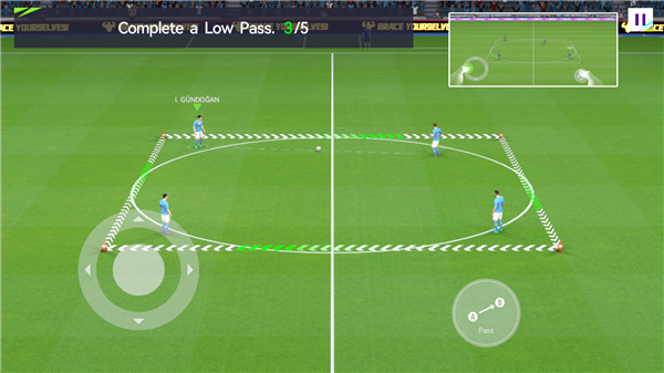 这是一场标准的11人制足球比赛,在游戏里你能操控每一位球员,通过默契的配合来不断取得进球,从而赢得比赛胜利。