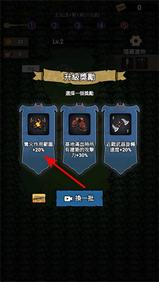 角色升级后会弹出奖励选择界面,选择篝火作用范围提升20%这类增益效果,能够增强生存类建筑的效能,提高场景内资源采集与防御覆盖的效率,为生存提供助力。
