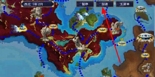 在地图界面点击加速按钮,能够加快游戏内时间的推进节奏,从而提升势力发展的进程效率。