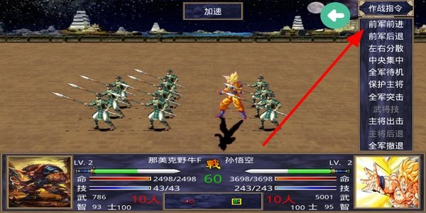 在战斗场景里挑选作战指令,指挥部队完成前进、后退之类的动作,调整战斗布局来应对敌方。